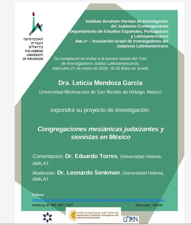 Tendrá lugar (en zoom) el 21 de enero de 2026 a las 16:30 hora Israel.